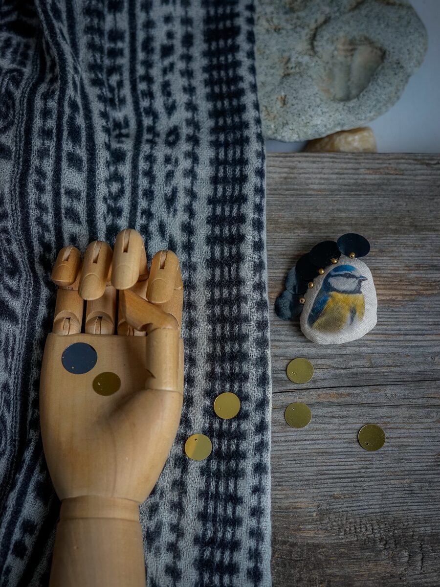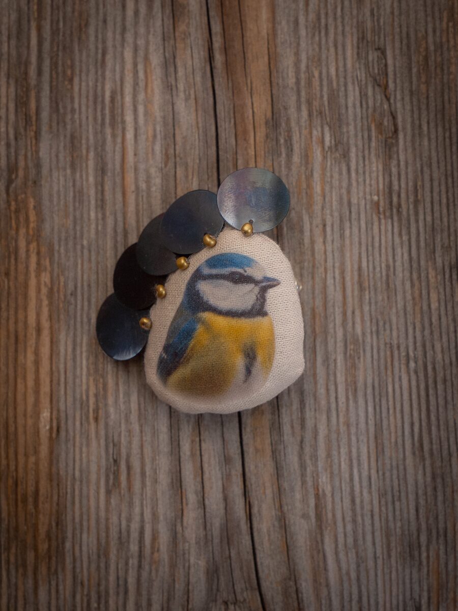 Bring a touch of nature-inspired elegance to your outfit with the Soft Brooch “BLUE TIT”, a delicate handmade accessory designed by Anu Kaelussoo. Inspired by the charming blue tit bird, this textile brooch combines natural textures with subtle sparkle for a refined yet playful look.