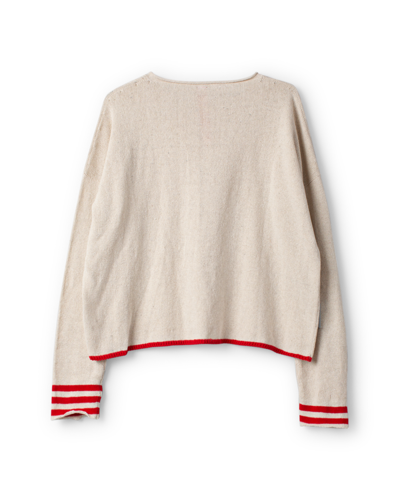 Charming Accents: Features delicate button closures and vibrant red contrast tipping along the hem and striped cuffs.