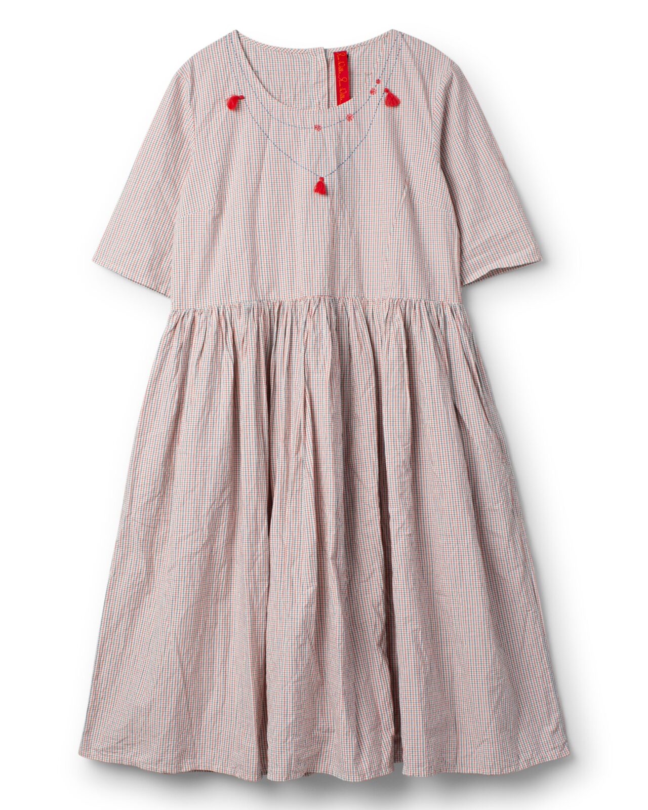 The Pyret Dress by Ewa i Walla is a delightful celebration of nostalgic charm and artistic detail. This below the knee-length piece is crafted from soft, breathable checked cotton, making it a perfect choice for warm days or layered autumnal looks.