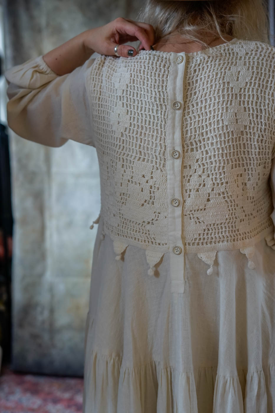 Buttoning at the back.