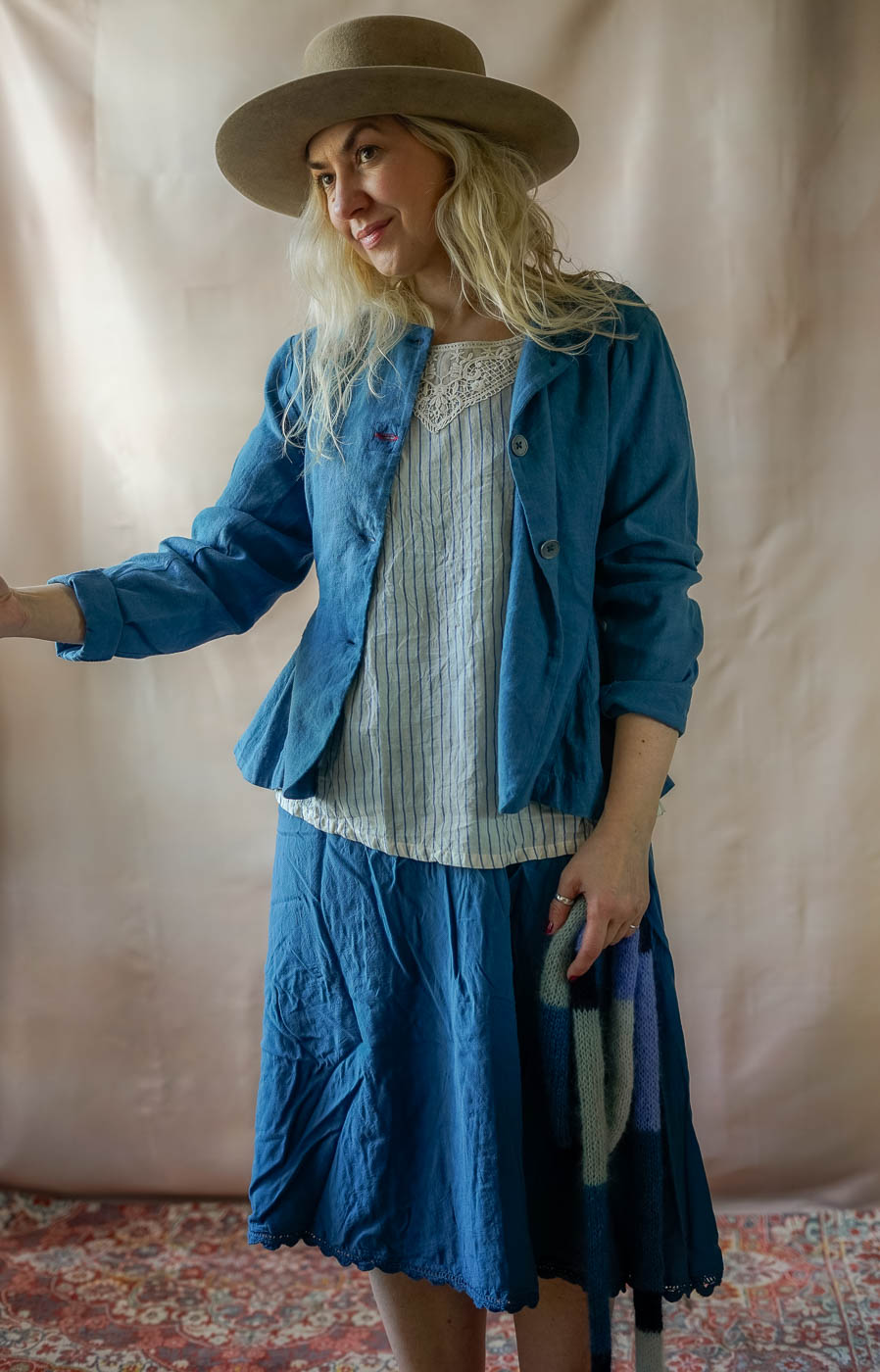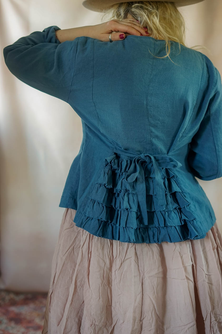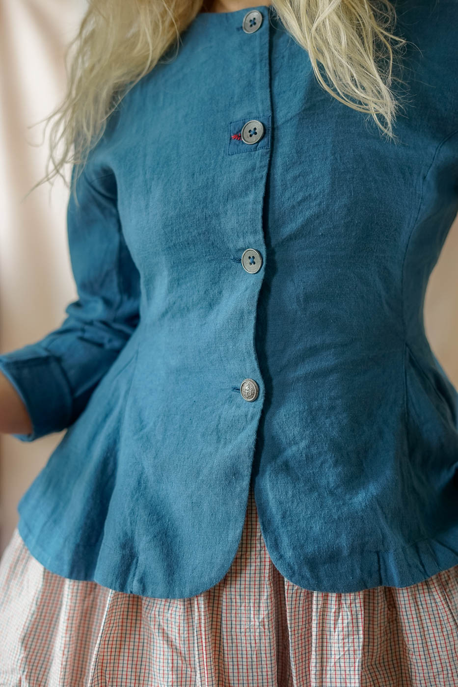 The Ewa i Walla Lucy Jacket in blue is a quintessential piece for those who love artisanal, heritage-inspired design. Crafted from a premium 70% linen and 30% cotton blend, this jacket offers a lightweight, breathable feel with a beautifully textured finish.