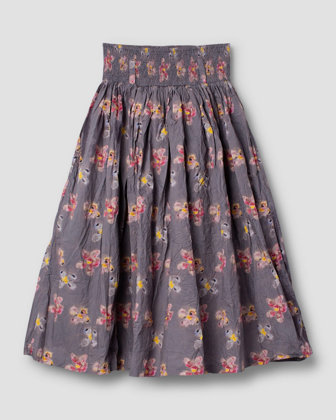The Piff skirt from Ewa i Walla is a romantic, vintage-inspired piece crafted in organic flower-patterned cotton. Falling gracefully to calf-length, it features a smocked waistband that ensures a comfortable and flattering fit while belt loops offer styling versatility with your favorite belts.