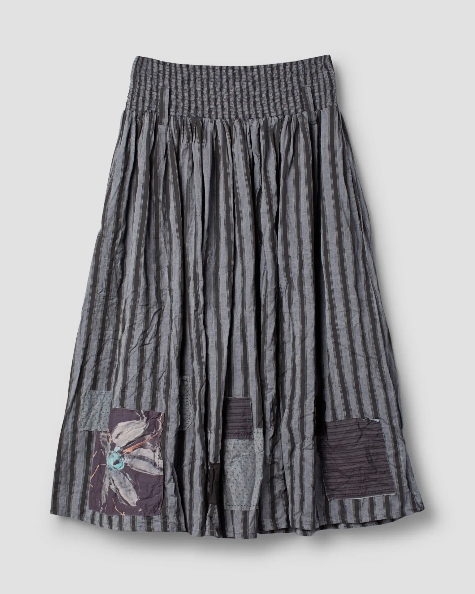 The Ping skirt by Ewa i Walla is a timeless piece that perfectly blends comfort, creativity, and Scandinavian charm. Made from lightweight cotton fabric in classic gray stripes, this skirt is designed for everyday wear yet carries the unique artistic touch that the brand is known for. Subtle patchwork details give it an effortlessly bohemian look, while the side seam pockets add both practicality and style.