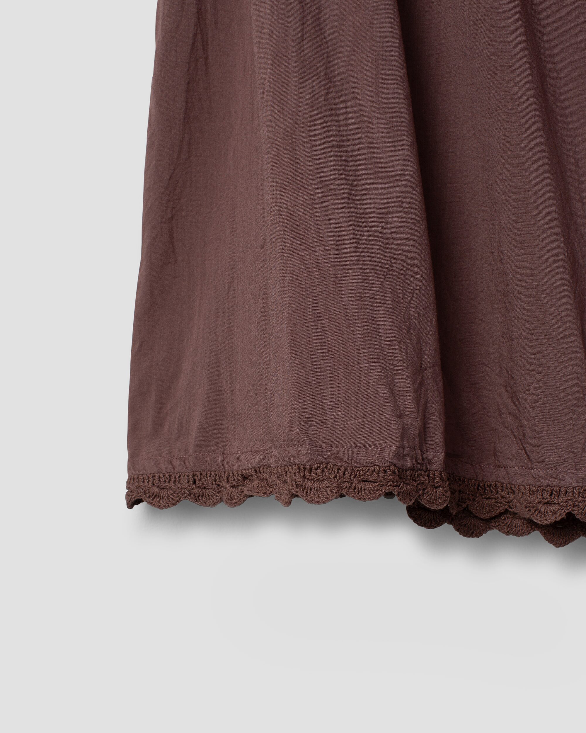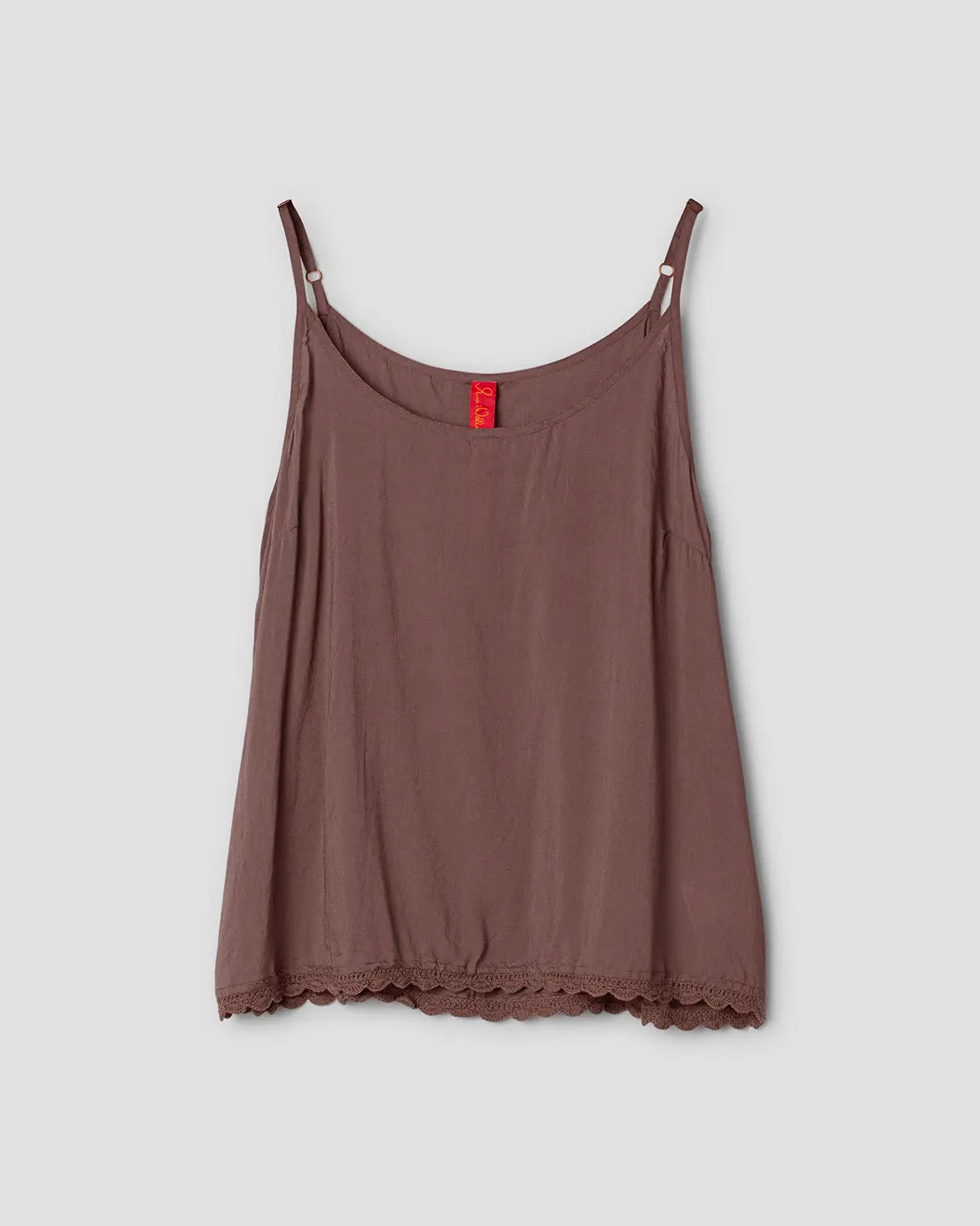 Top in EcoVero™ with adjustable shoulder straps and beautiful crocheted cotton lace at the bottom. The perfect top to wear under all our models in sheer organdie.
